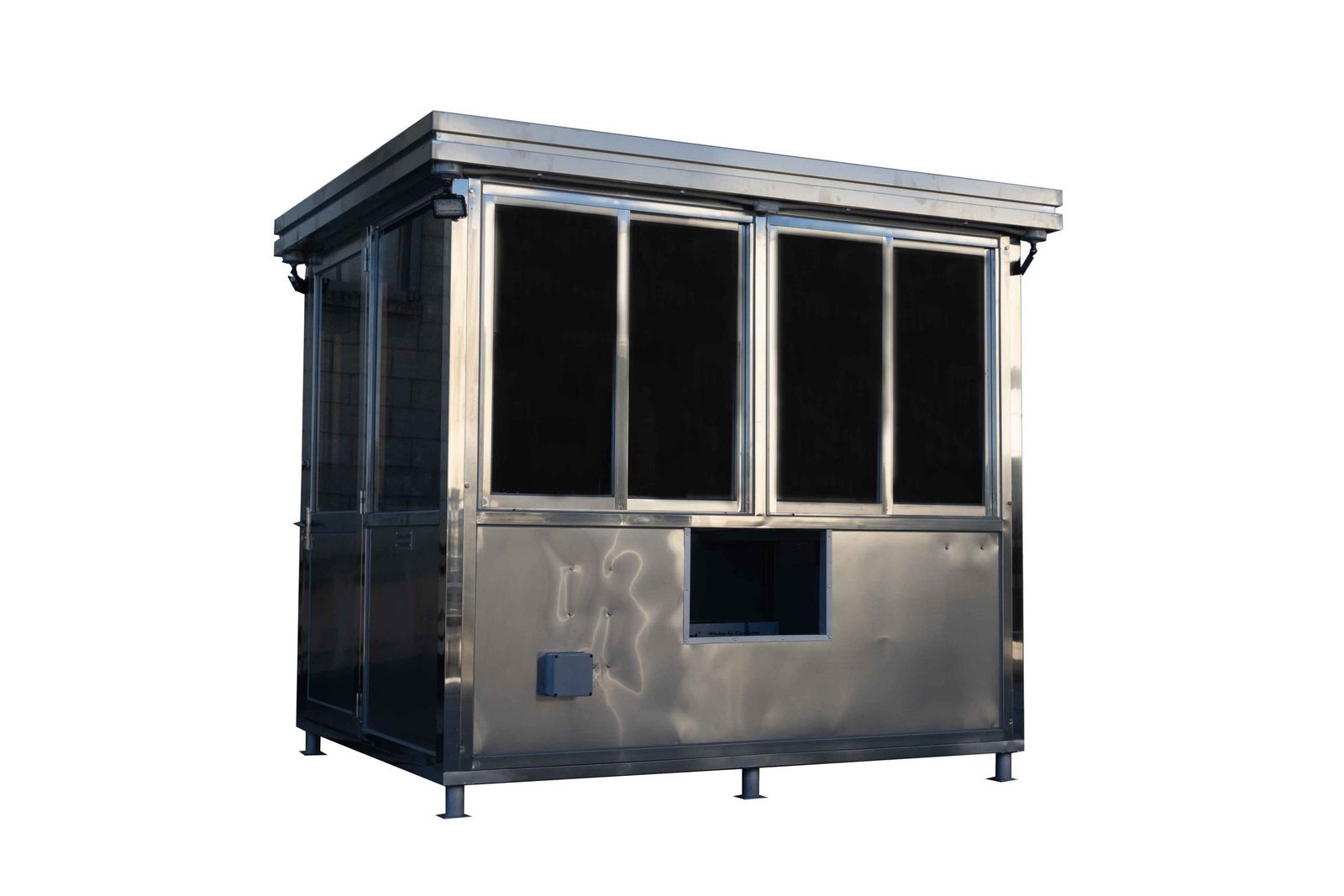 Our stainless steel ticket booths are simply top-of-the-line. Built from stainless steel-wrapped insulated panels, they have 2” thick insulation on the walls and 6” of insulation on the roof. With a welded and bolted construction, these guard shacks are meant to last. With stainless steel hinges on swing door models, and tracked stainless steel sliding doors on other models, we are sure to have what you need.