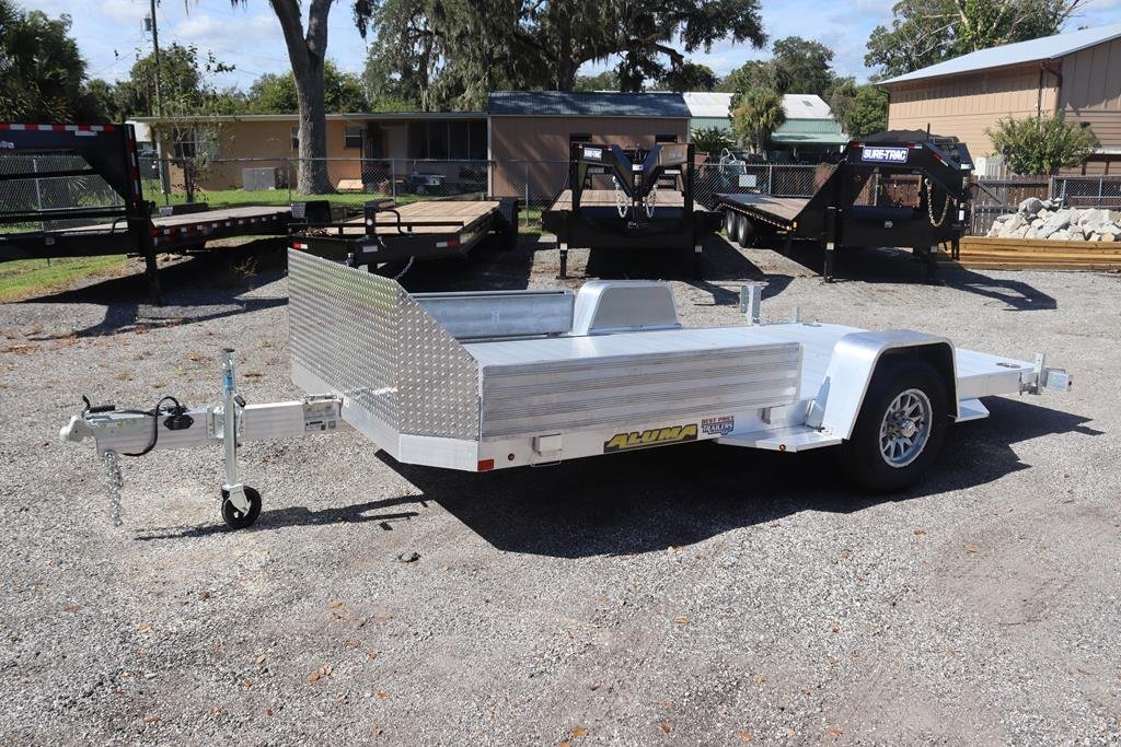In stock, 6.5×14.5 aluminum heavy tilt utility trailer. With a slingshot package, 12 degree tilt and a front retaining rail.