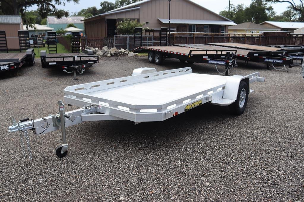 Constructed with an extruded aluminum floor, aluminum fenders, and 8.5″ retaining rails, this trailer is built to resist rust while keeping your load secure. The A-frame aluminum tongue (48″ long) is equipped with a 2″ coupler and a 1200 lb swivel tongue jack. It also includes Westlake ST205/75R14 LRD radial tires (DOT: 00K JTYACT 0325×2), 5-lug aluminum wheels, and safety chains.