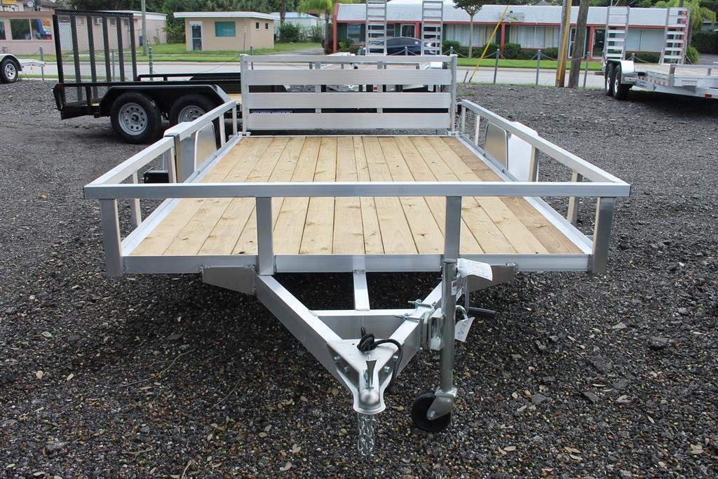 Check out this 7×12 aluminum utility trailer. This sweet thing has a bi-fold gate, aluminum frame and a 2010 payload. 7 X 12 Aluminum Tube Top Utility, 3K Idler